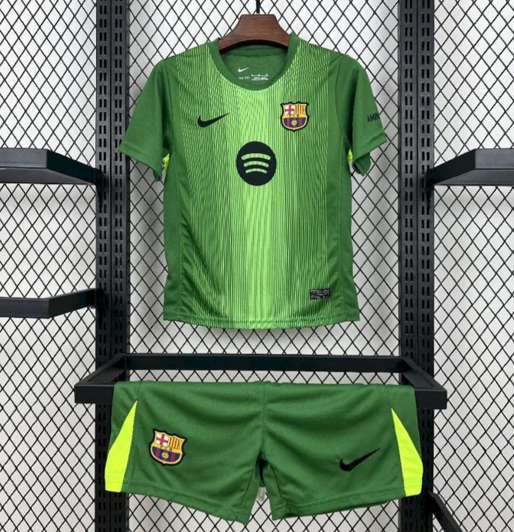 2025/26 Kids Barcelona Goalkeeper Green Kit – Maillot authentique – Livraison gratuite