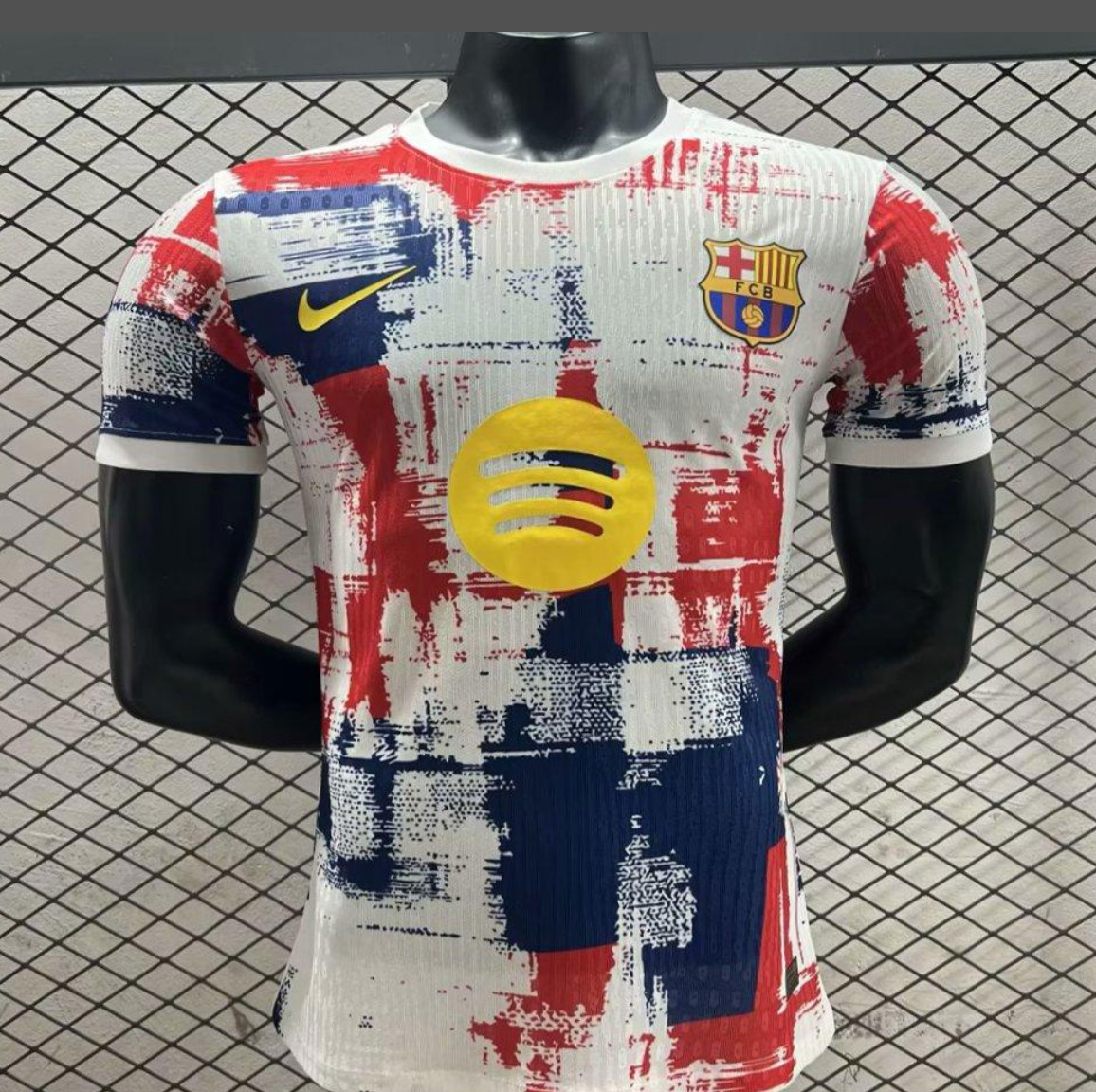 25/26 FC Barcelona White with Red & Blue Brushstroke Pattern